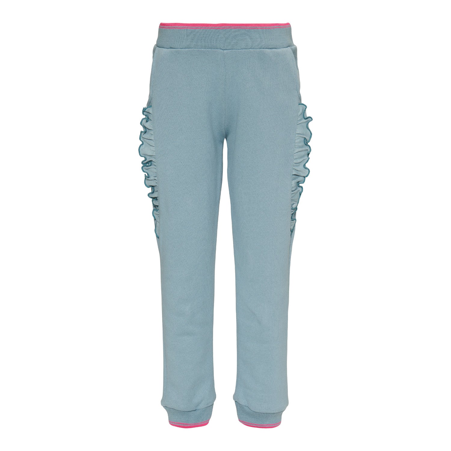 Blaue Jogginghose von LE BIG. Diese bequeme Jogginghose ist aus luxuriösem Bio-Jersey gefertigt. Mit kontrastierenden Neonstreifen an Taille und Knöcheln für eine perfekte Passform. Seitentaschen vorne und verdeckte Taschen hinten. Die Rüschen aus Bio-Jersey verleihen der Hose das gewisse Extra. Ob in der Schule oder im Sportunterricht – diese Jogginghose ist ein echter Hingucker in ihrer Garderobe.