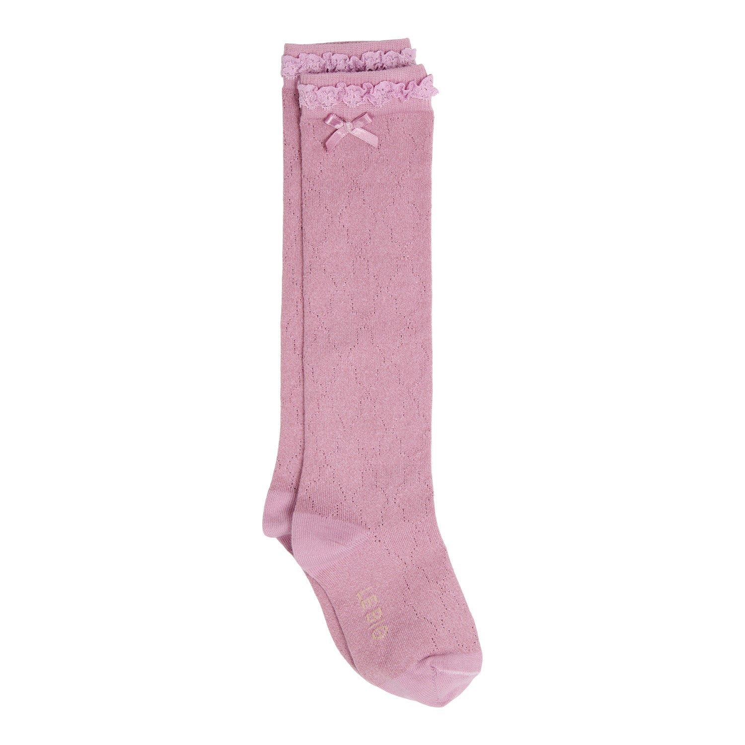 Kniestrümpfe aus Bio-Baumwolle von LE BIG. Die Strümpfe reichen bis knapp unters Knie. Mit klassischer Lochmuster-Strickstruktur und luxuriösem Spitzenband am oberen Ende. Erhältlich in 7 Farben. Hergestellt in unserer Fabrik in Portugal.