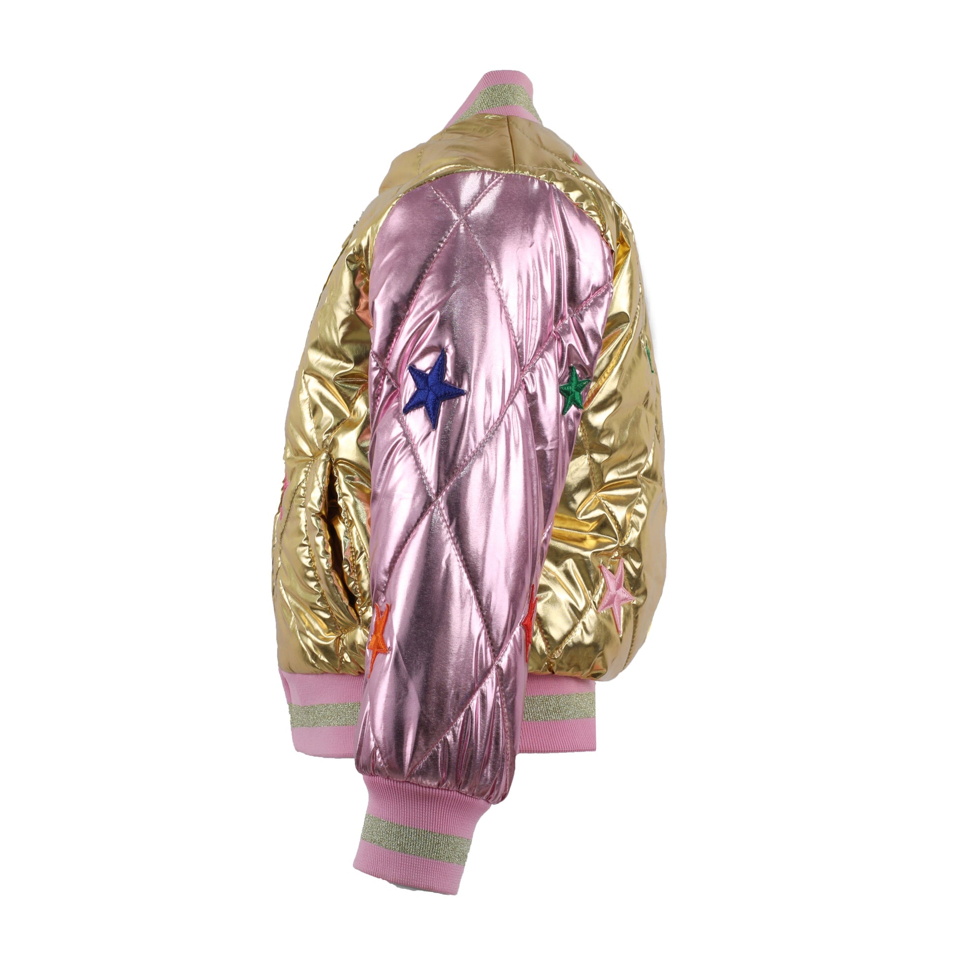 LE BIG goud met roze glanzende meisjes bomber jas met sterren.