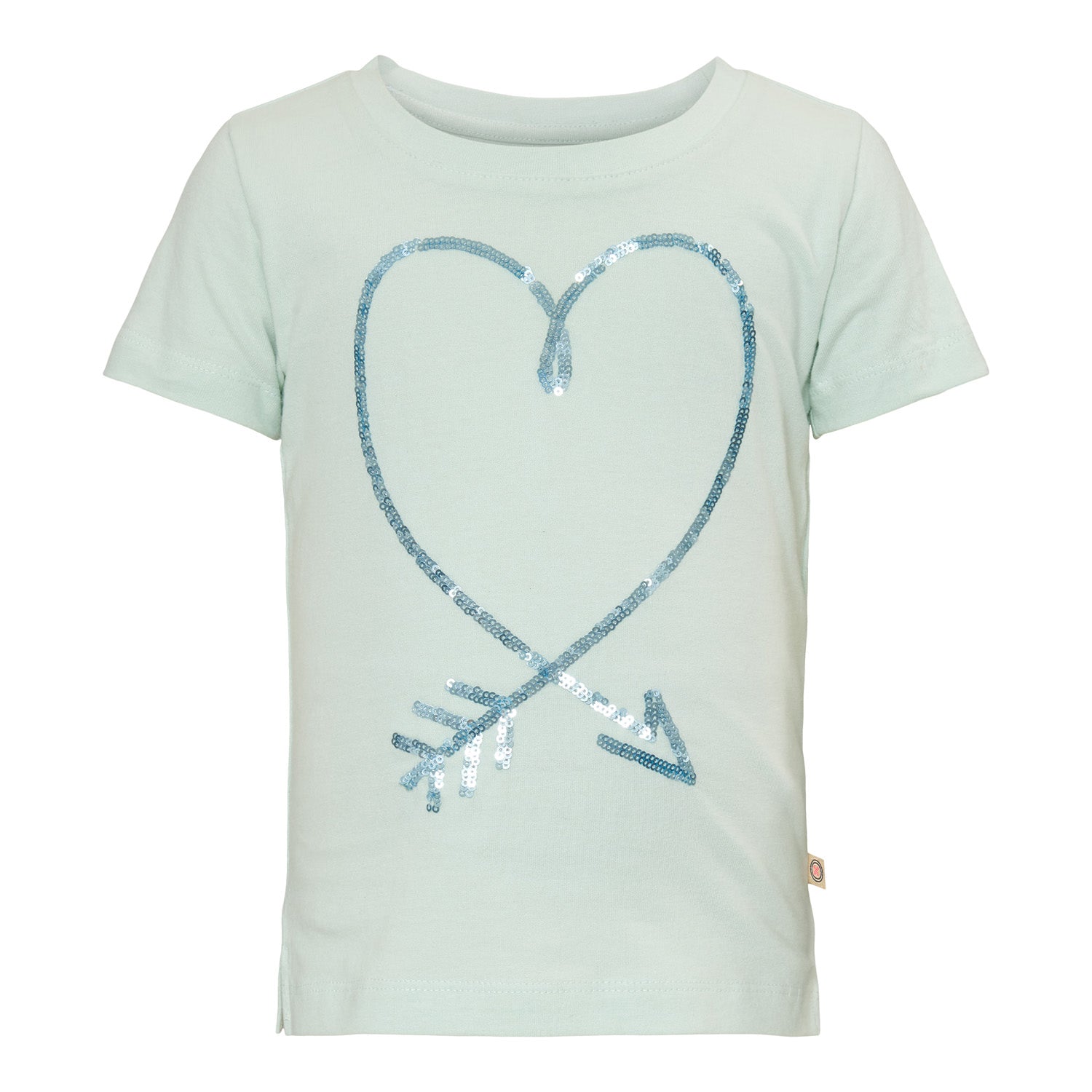 Meisjes T-shirt met pailletten hart. Dit super zachte katoenen T-shirt heeft een glanzende glitter hart en pijl artwork op de voorkant van het shirt. Verkrijgbaar in 3 kleuren!