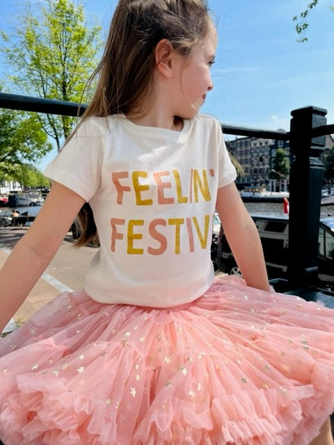 Mega volle tule rok van LE BIG! De ultieme tule prinsessen rok, draai heerlijk in het rond met deze multi lagen tule rok met gouden sterren print. Deze rok heeft een jersey binnen rok en een heerlijk brede elastieken taille band. Draag deze prinsessen rok voor een speciale gelegenheid, zoals een verjaardag of gewoon lekker stoer naar school! Waarom niet?! Bij LE BIG hebben we een hele selectie aan tule rokjes, in alle kleuren van de regenboog, met een mooie print of met pailletten, er is voor iedereen wel een tule rokje te vinden. Shop alle LE BIG tule rokjes hier!