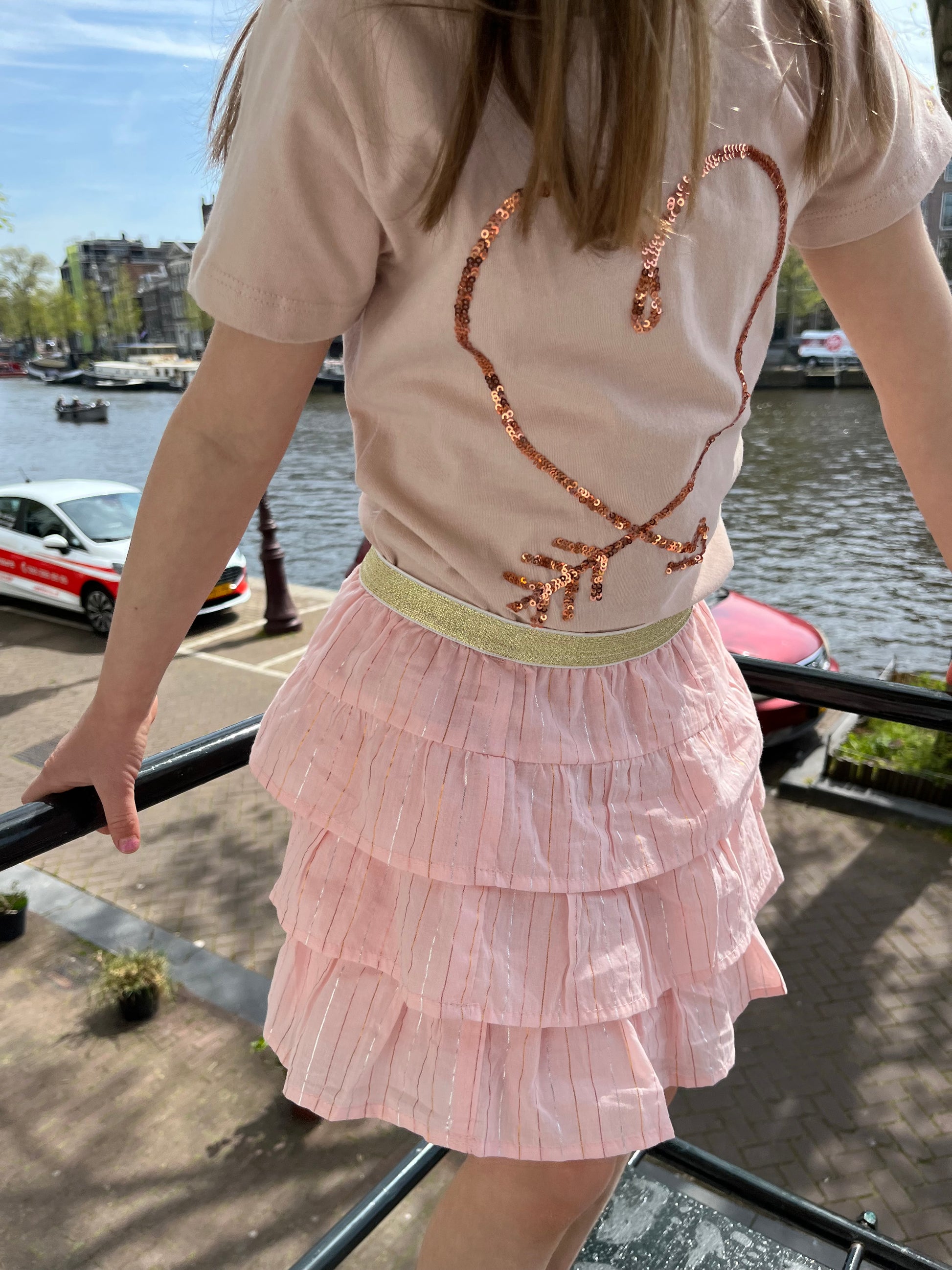 Meisjes T-shirt met pailletten hart. Dit super zachte katoenen T-shirt heeft een glanzende glitter hart en pijl artwork op de voorkant van het shirt. Verkrijgbaar in 3 kleuren!